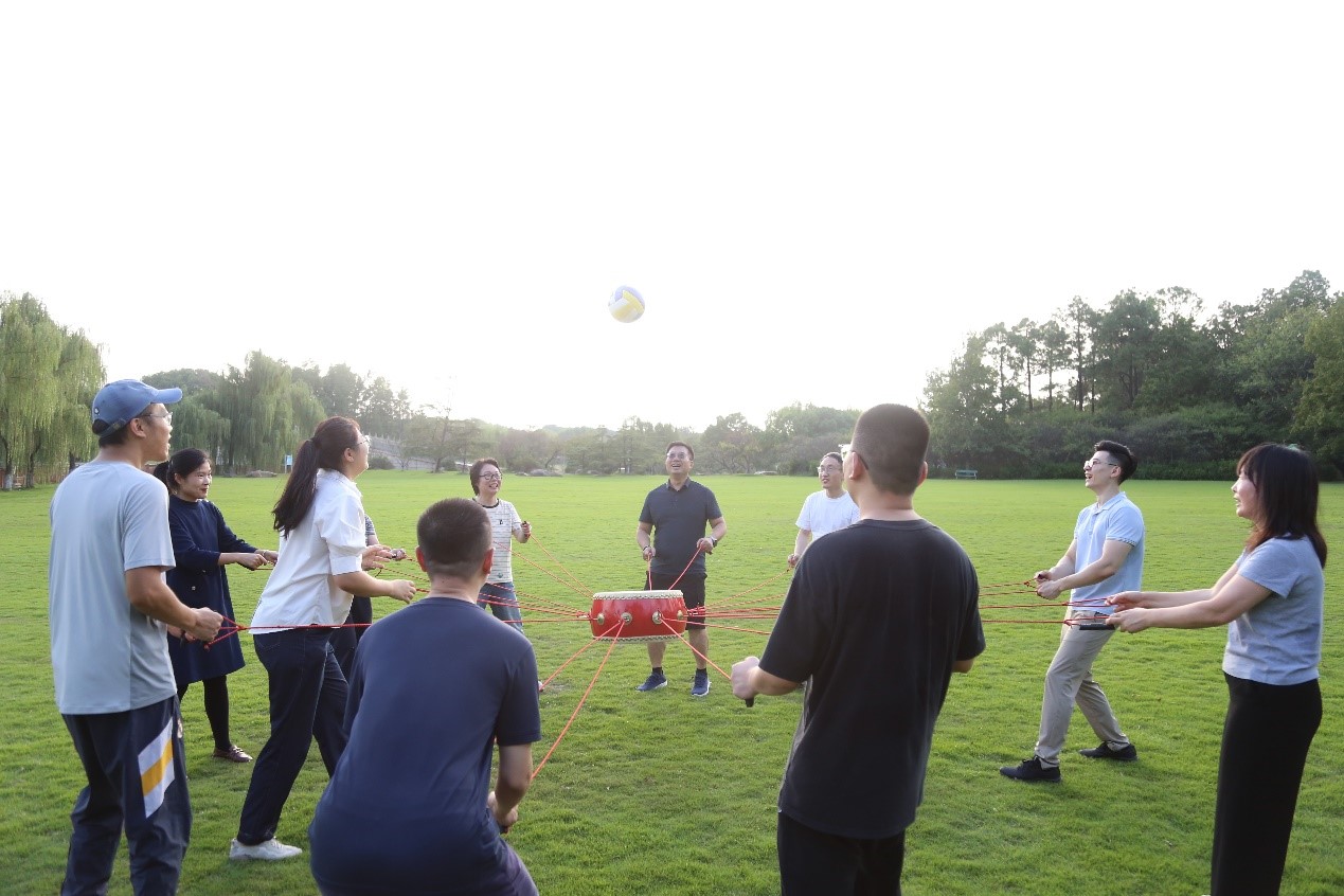 在结束陈云纪念馆学习参观活动之后,全体党员来到东方绿舟拓展基地开展素质拓展活动,活动分为龙舟竞渡、一鼓作气、水到渠成等拓展环节。龙舟竞渡,在铿锵的鼓点声中,各队成员心往一处想、劲往一处使,挥桨击水,奋楫争先,深刻体悟了“同舟共济”的团队内涵与步调一致的执行力量。“一鼓作气”项目要求团队成员紧密配合,牵引鼓面颠球,大家从生疏到默契,在一次次失败与调整中,将专注力与协作力凝聚于每一次起落。而在“水到渠成”环节,各队需利用半截管道,合力搭建一条输送通道。大家群策群力,精准衔接,在实践中深化了流程优化与高效协作的重要性。活动现场气氛热烈,欢声笑语不断,从策略商讨到默契配合,从相互鼓励到共同庆祝,每一位成员都在挑战中超越了自我,在协作中增进了情谊。