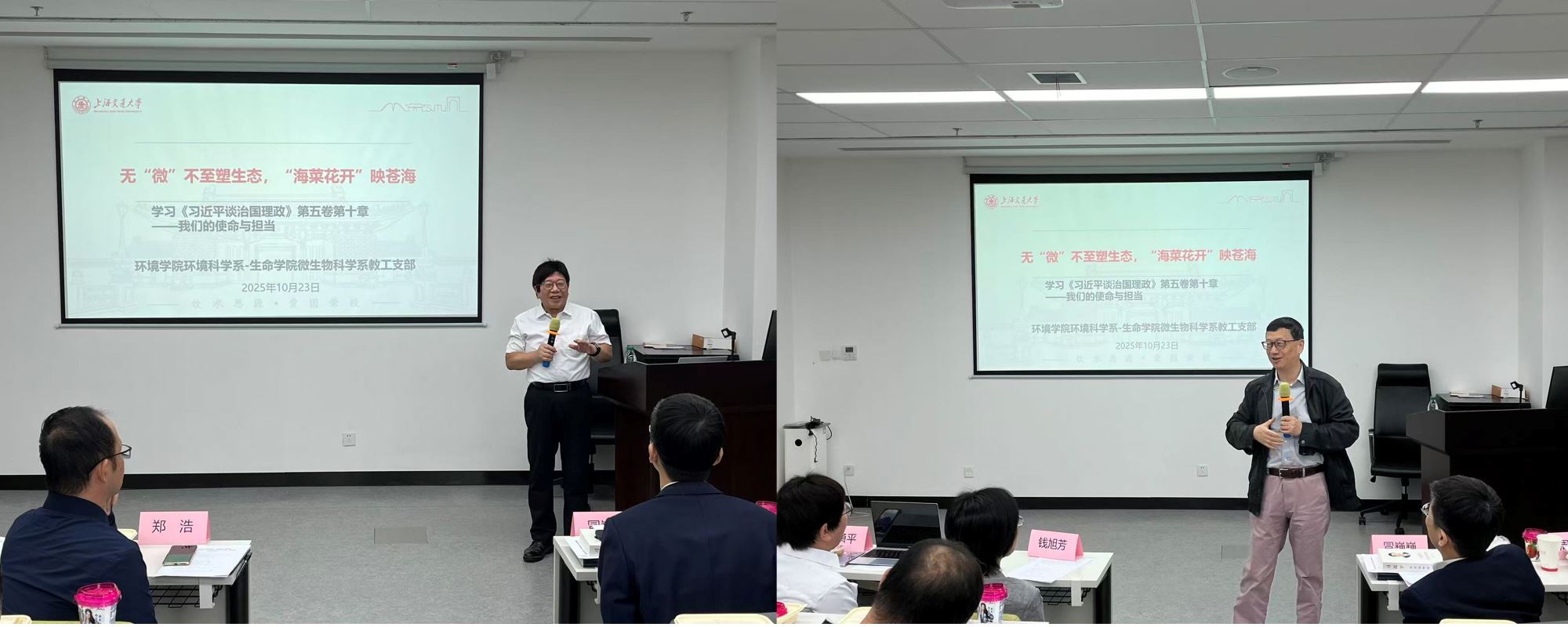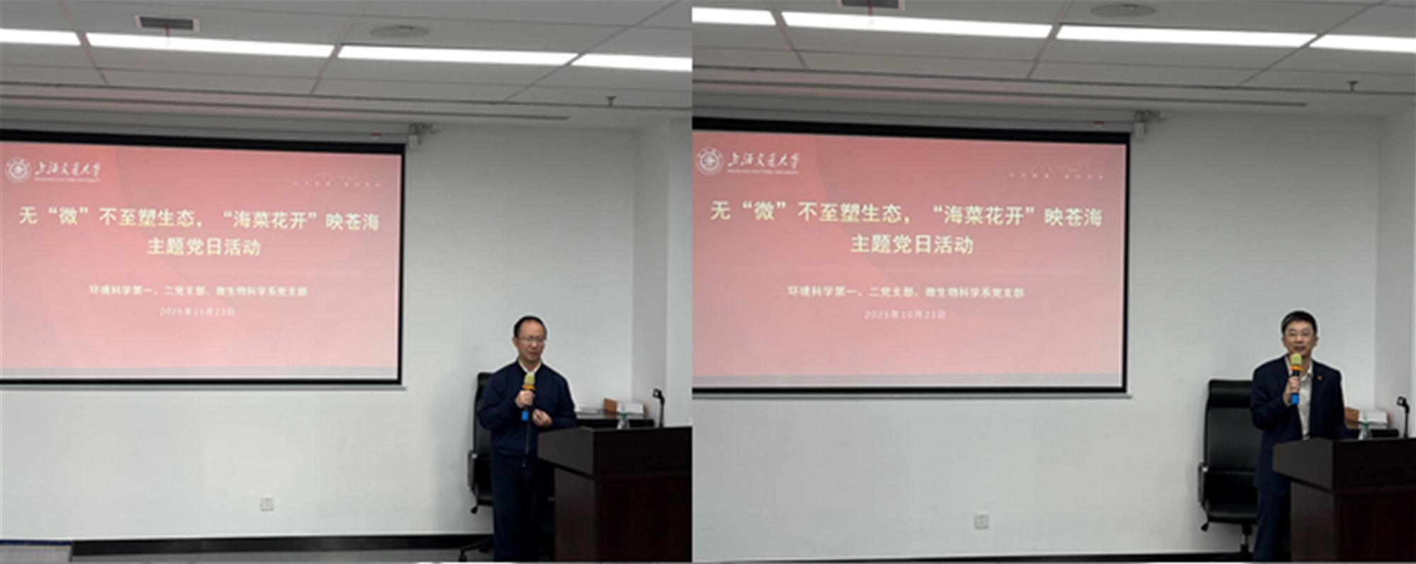 2025年10月23日中午,av解说 微生物科学系教工党支部与环境科学与工程学院环境科学第一、第二支部联合开展主题党日共建活动。环境学院党委书记郑浩,副院长赵砚彬,教工党支部支部书记钱旭芳、张岳、张波,av解说 党委书记冒巍巍、副书记王鑫、微生物科学系主任周宁一、支部书记徐俊以及60多位党员参加活动。本次活动以“无‘微’不至塑生态,‘海菜花开’映苍海”为主题,旨在推动科研领域的交叉融合,共同为我国的生态文明建设贡献智慧与力量。