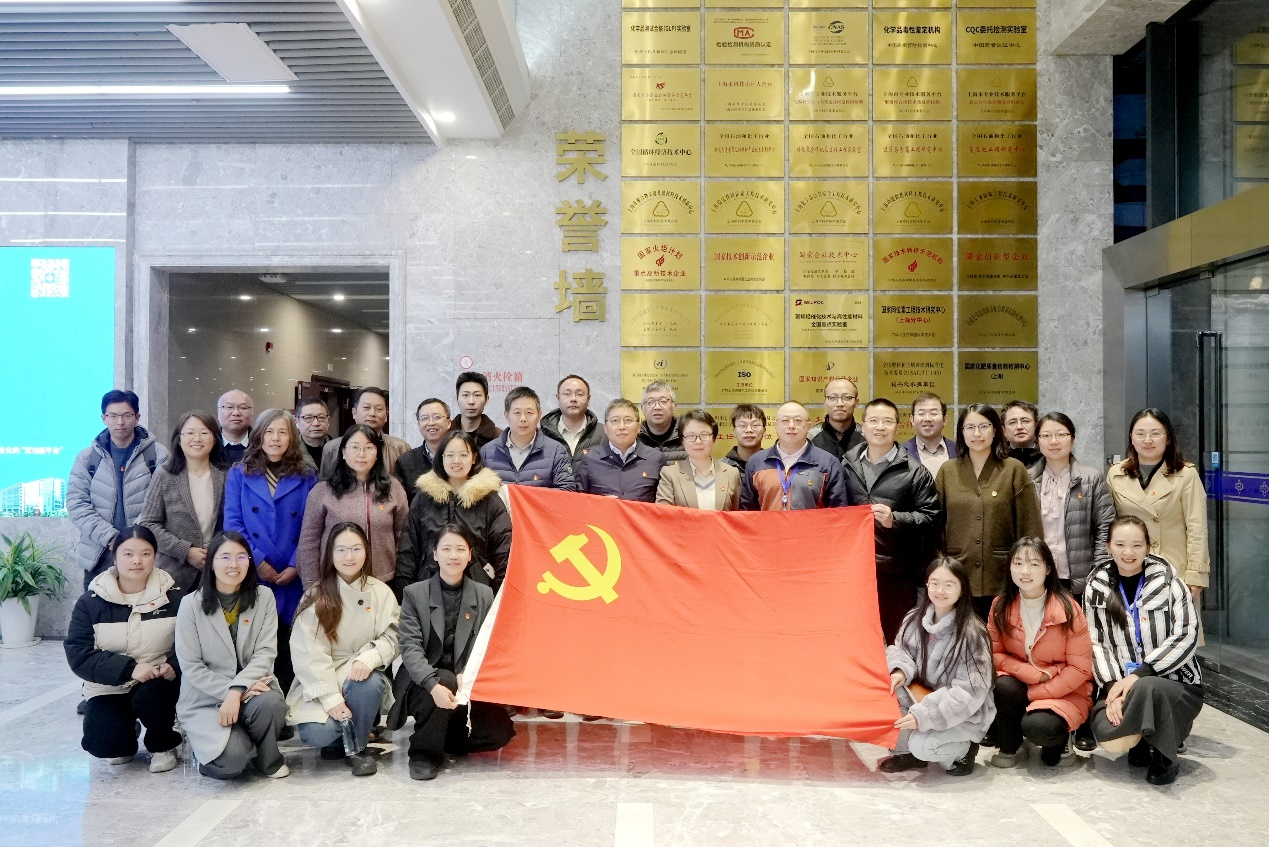 2025年12月12日下午,av解说 微生物科学系教工党支部、生物工程系教工党支部党员在学院党委副书记王鑫,党支部书记徐俊、陶飞的带领下,前往上海化工研究院(华谊集团中央研究院)开展联合共建主题党日活动。上海化工研究院党委书记、董事长褚小东,党委副书记、总经理商照聪和同位素生检党支部、检测中心党支部党员共同参加活动。本次活动旨在加强学院和上海化工研究院在科学研究和产业转化领域的合作交流,促进产学研深度融合,加速科技创新成果转化,共同探索生物化工在科学发展和产业升级建设中的贡献与价值。