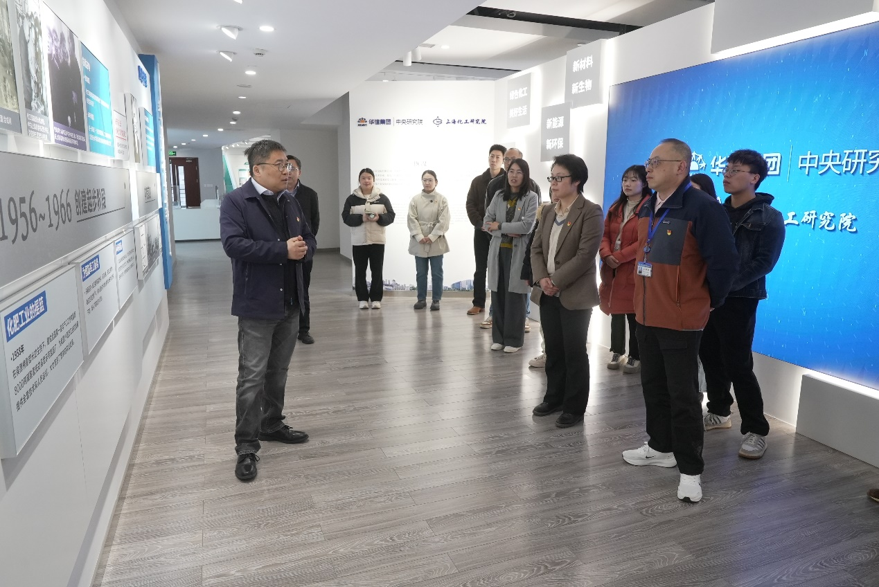 首先,在上海化工研究院科技成果展示厅商照聪为大家全面地介绍了上海化工研究院的历史沿革和发展变革之路。上海化工研究院是我国化学工业领域历史最悠久、贡献最突出的综合性研究机构之一,在近70年发展历程中,始终以国家战略需求为导向,在多个历史阶段解决了化工领域的“卡脖子”问题,并将科技创新与产业实践紧密结合,为中国成为世界化工大国做出了不可替代的贡献。