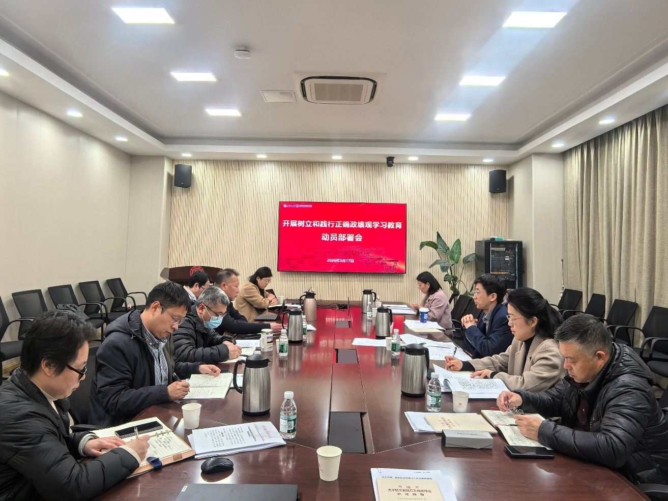 冒巍巍做动员部署讲话。他指出,本次学习教育是党中央立足新时代新征程、着眼全党事业发展全局作出的重要部署,主题鲜明、意蕴深远,体现了中央对党员干部队伍建设的高度重视。全院上下要紧紧围绕“立党为公、为民造福、科学决策、真抓实干”的总要求,扎实推进学习教育走深走实。针对本次学习教育提出三点要求:一是要提高政治站位,深刻领会树立和践行正确政绩观的重大意义。要把树立和践行正确政绩观作为推动学院高质量发展的思想先导和行动指南。二是要聚焦重点任务,推动学习教育与事业发展深度融合。班子成员要履行好“一岗双责”,将学习教育与分管业务相结合,带头领办重点难点问题,以身作则、以上率下,真正做到围绕中心、服务大局。三是要强化成果转化,推动学习教育取得实实在在的成效。以正确政绩观引领推动学院在“十五五”新征程中开好局、起好步,推动学院各项事业再上新台阶。