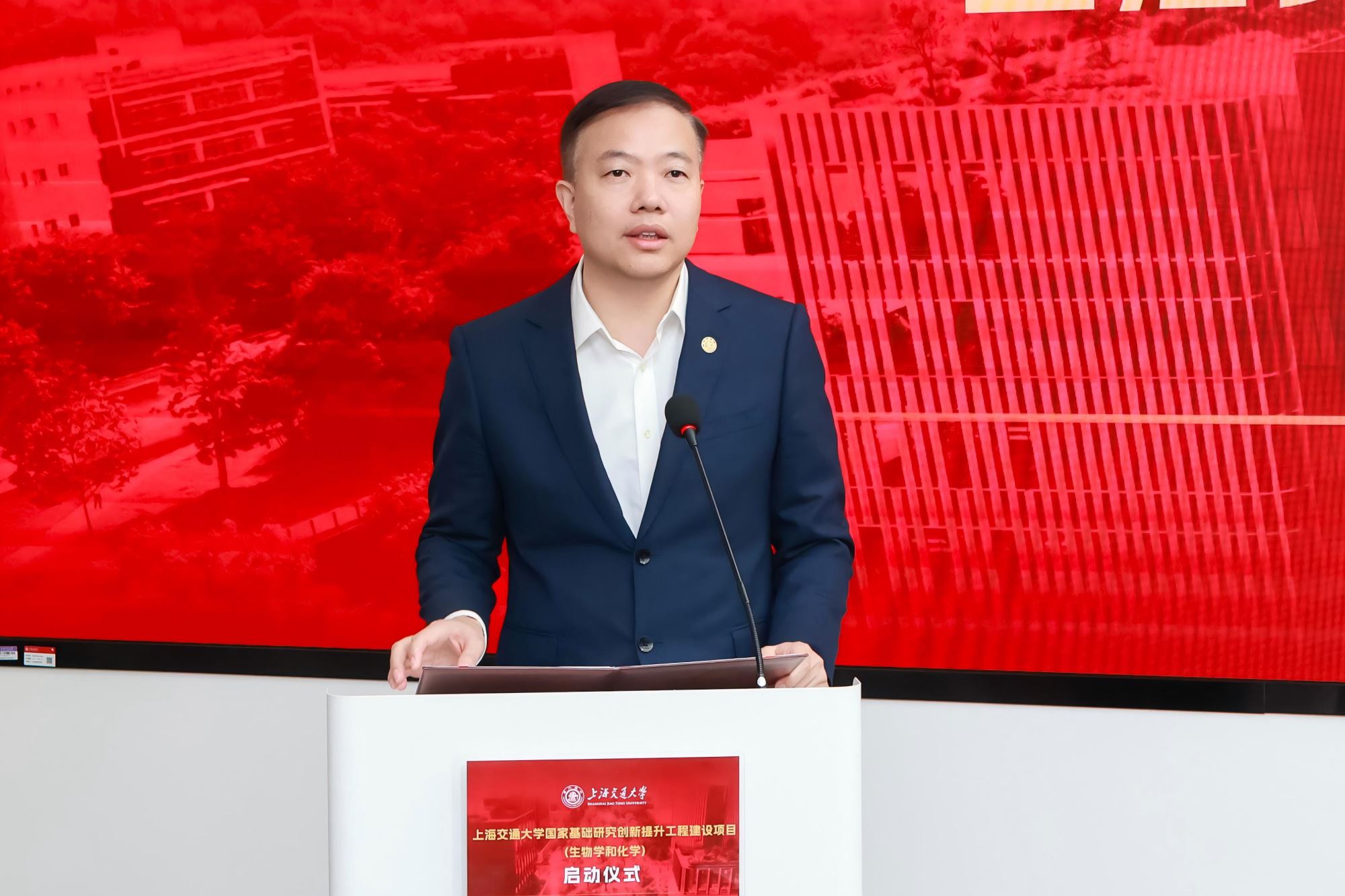 4月2日,上海交通大学国家基础研究创新提升工程项目(生物学和化学)(以下简称“项目”)启动仪式在闵行校区举行。闵行区副区长李阳,中国科学院院士、上海交通大学校长丁奎岭,中国工程院院士、原校长林忠钦,中国科学院院士颜德岳、邓子新、樊春海、张万斌,上海理工大学校长朱新远,上海交通大学副校长蒋兴浩,原副校长吴旦,学校相关机关部处、直属单位负责人,以及av解说 、化学化工学院班子成员、师生和校友代表共同出席仪式。启动仪式由蒋兴浩主持。