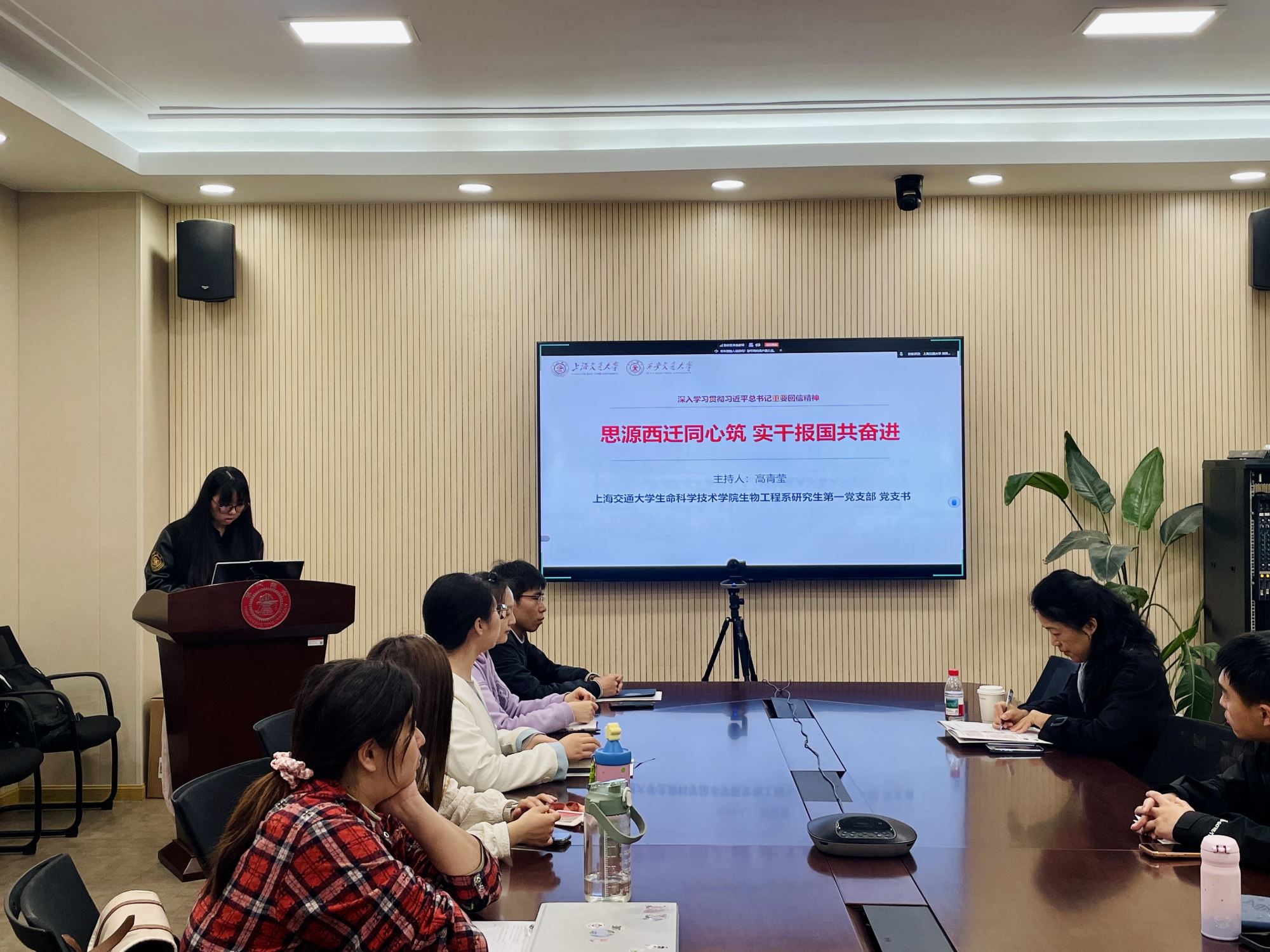 为深入学习贯彻习近平总书记给四所交通大学全体师生重要回信精神,庆祝交通大学建校130周年,传承弘扬西迁精神,近日,av解说 生物工程系研究生第一党支部联合上海交通大学马克思主义学院马克思主义理论博士生第一党支部、科学技术史研究生党支部、西安交通大学公共政策与管理学院硕2025级党支部、化学工程与技术学院硕士生党支部举办“思源西迁同心筑,实干报国共奋进”主题党日活动。av解说 副院长蒋群、西安交通大学公共政策与管理学院副院长王立剑两校各支部党员同志共同参加,活动由av解说 生物工程系研究生第一党支部书记高青莹主持。