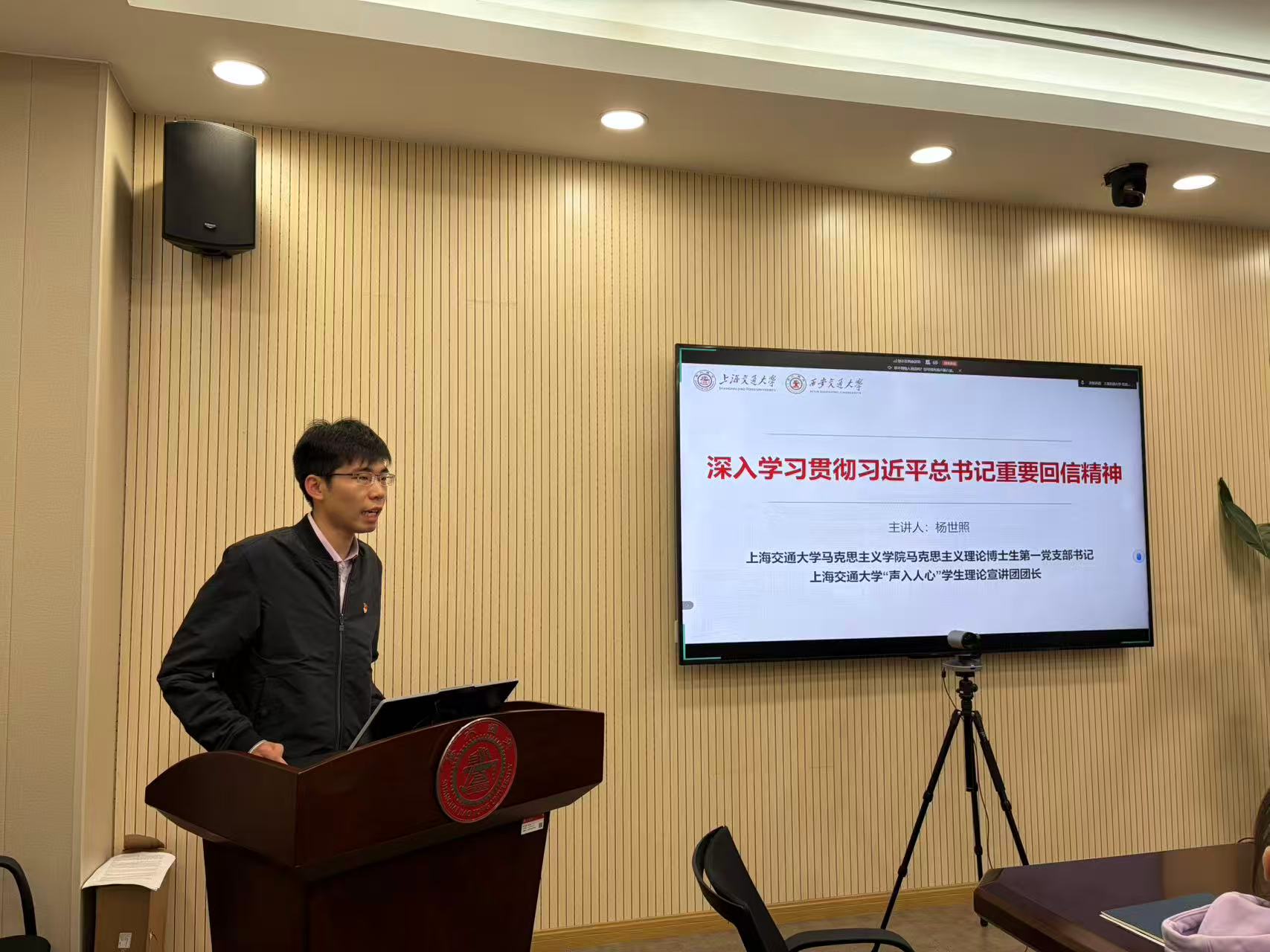 在理论学习环节,上海交通大学马克思主义学院马克思主义理论博士生第一党支部书记、“声入人心”学生理论宣讲团团长杨世照带领大家深入学习习近平总书记重要回信精神,围绕西迁精神在新时代服务基层与边疆的实践要求、以回信精神武装头脑并指导实践推动工作等方面展开系统解读;西安交通大学公共政策与管理学院硕2024级党支部书记裴璐晓以“向西而歌,与国同行”为题,重温西迁历史征程,阐释西迁精神内涵,从使命担当、爱国实践、精神传承等方面展现新时代交大人扎根西部、服务国家的责任担当;av解说 学生党建工作辅导员齐湉回顾了交大在淞沪会战时期兴办国民伤兵医院的历史,讲述宋庆龄、黎照寰等前辈实业报国、育人兴校的感人事迹,深刻阐释校训中蕴含的家国担当,参会同志在历史回望中感悟交大人始终与国家民族同呼吸、共命运的精神底色。